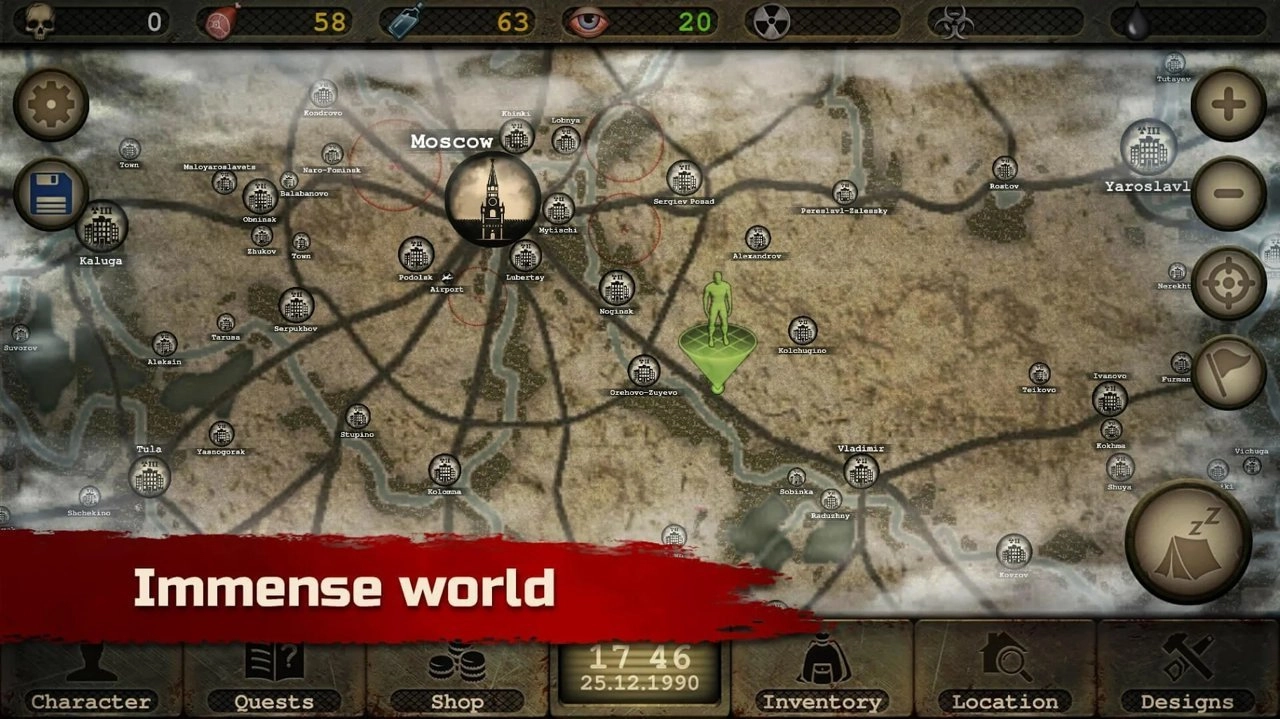 季节更迭,苏联的大幅地图上分布着两千七百多个各具特色的城镇。在森林里求生,猎捕动物,但务必当心:就连老鼠都可能对您造成严重伤害!去探索这款僵尸RPG游戏的广阔世界吧!