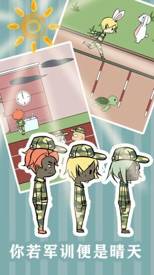 《军训大作战》是一款模拟大学军训生活的游戏。炎炎夏日里,火辣辣的太阳烤着大地,我这娇弱的姑娘可有点扛不住啦——又累又怕晒黑,实在是太柔弱了~快来帮女主想办法逃避军训吧!不过在军训过程中,你会遇到不少新鲜好玩的事儿,说不定玩着玩着,想法就变了,愿意继续坚持军训呢!