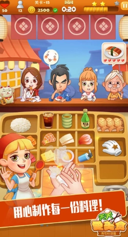 寿司大厨这款模拟经营游戏,巧妙地将寿司制作的细腻质感与小店经营的成就喜悦融合成了超治愈的体验!你将化身为寿司店的主厨,从一间简单的小铺面开始经营,核心的乐趣就在于见证小店从无到有的成长过程——既要钻进后厨专注制作寿司,既能手握传统的三文鱼寿司、金枪鱼寿司,也能尝试创新搭配食材。每一款寿司的制作都还原了细节,从捏饭到铺料,看着亲手制作的成品被端给顾客,那种手作的满足感简直满溢而出。