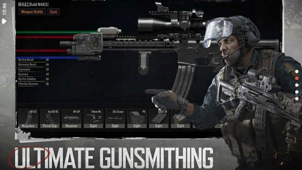 真实的射击手感,枪械、护甲与子弹都完美还原战场体验,不同于以往的模拟射击游戏,每一颗子弹都带有战场触感。枪械改造也高度还原,组装配件、改造枪械,打造独一无二的枪械体验。