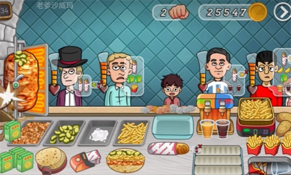 老爹沙威玛汉化版是老爹系列最新推出的模拟经营类游戏。它延续了该系列经典的经营玩法,玩家将化身沙威玛店的老板,通过制作多种口味的沙威玛来满足顾客需求,以此提升店铺的客流量与收入。在游戏里,玩家需要依据顾客各异的口味偏好,为他们定制专属沙威玛,同时还要管理店铺的各项事务。通过持续提升制作效率、创新菜品,玩家能够不断拓展自己的生意,充分体验经营的乐趣与成就感。