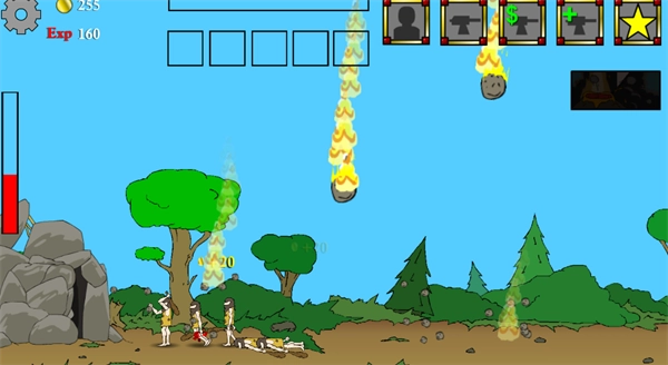 现在,特技得等敌人多了才能用,射手也不再是摆设。先派2个步兵在前,后面跟上2个冲锋队——这组合很完美,步兵正面刺敌,冲锋队从背后开枪!坦克暂时不用。等钱够了就卖掉过时的弹射器,换成火箭枪管。接着把城防建到最高级,趁敌人密集时用飞机轰炸!卖掉小型加农炮,换成双发枪管。继续用步兵配冲锋队对抗。钱够就接着放连发武器。对方出坦克,就用飞机炸,毕竟坦克目标太大!把所有防御都换成双发枪管,然后升级。
