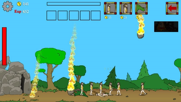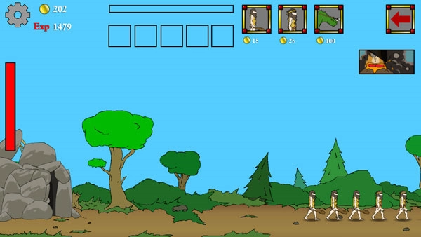 开局先部署一名恐龙骑手,等敌人派出第五个单位时,立刻释放火山爆发特技,随后放置投石器。接下来暂时用初始的恐龙骑手进行对抗,若骑手阵亡就补充新的,此时每次只上一个即可。要注意尽量让战斗发生在我方防御的攻击范围内!等特技冷却完成后,瞅准敌人兵力较多的时机再使用!你也可以多派几个恐龙骑手。总之现阶段的核心是尽可能积累金币。当敌人派出恐龙骑手时,直接用特技应对无需多言。金币达到450以上就卖掉投石器,换成原始弹弓。若金币不足100,也可以用部落人,但绝对不能用弹弓手,前三个时代严禁使用射手单位!经验值足够就升级!