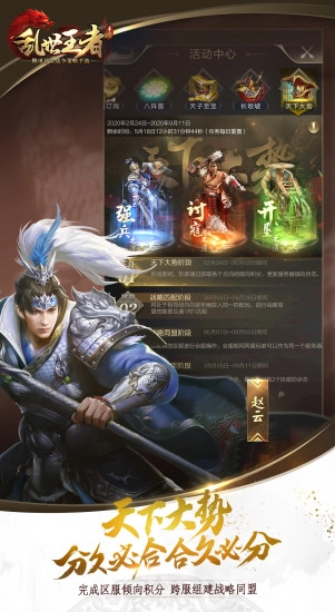英雄集结,志士结盟。你可以选择加入已有的联盟,也可以亲手创建属于自己的联盟。在这里,你将与其他玩家并肩作战,一同商议合纵连横的策略,携手对抗那些敌对的势力,共同守护联盟的荣耀。