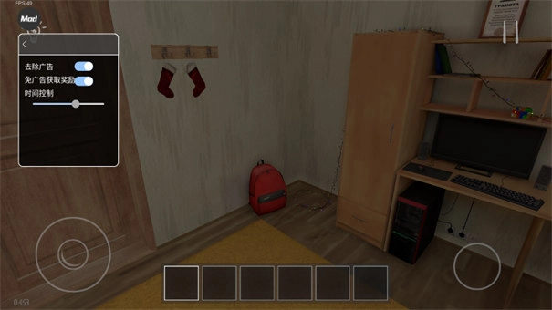 1、进入游戏后,我们会出现在自己的房间里,用摇杆就能移动,点击物品就能进行交互,比如开门、打开柜子这类简单操作。