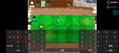 6、打开虚拟键盘,ws键控制胆小菇上下移动,w为向上移动,s为向下移动。